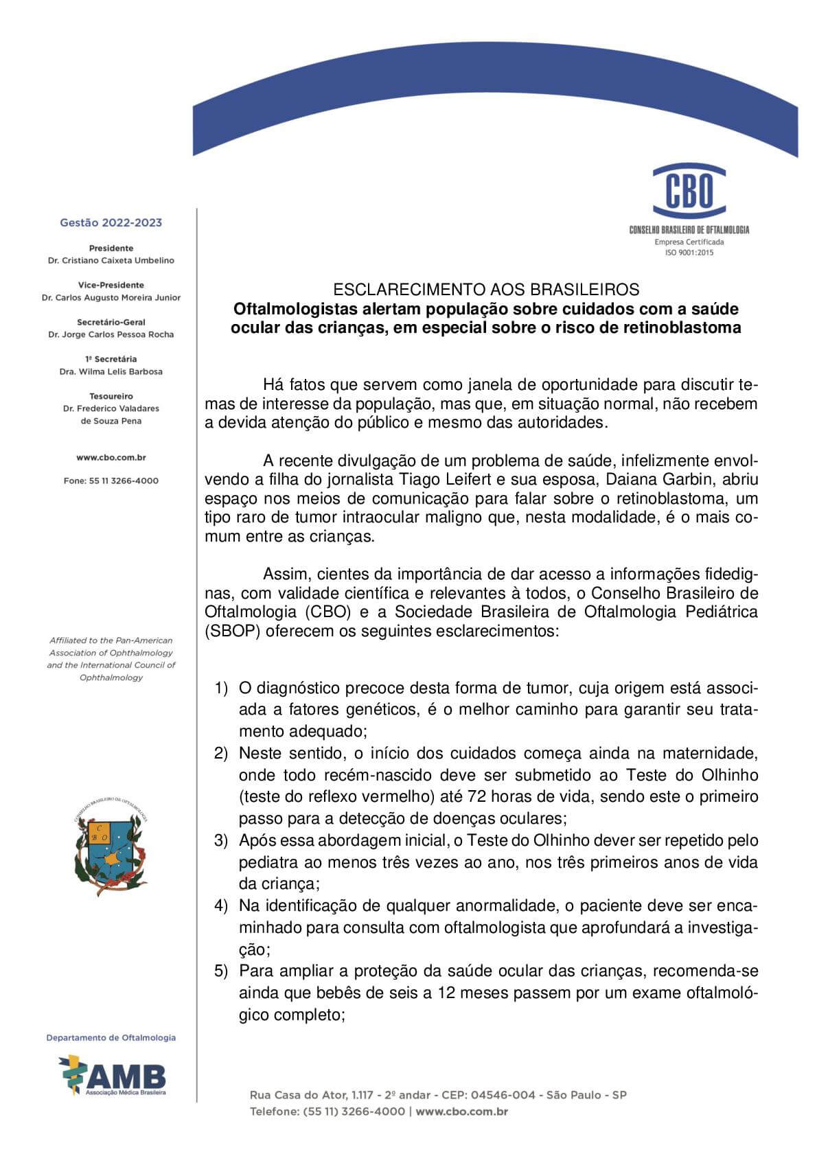 Esclarecimento do Conselho Brasileiro de Oftalmologia